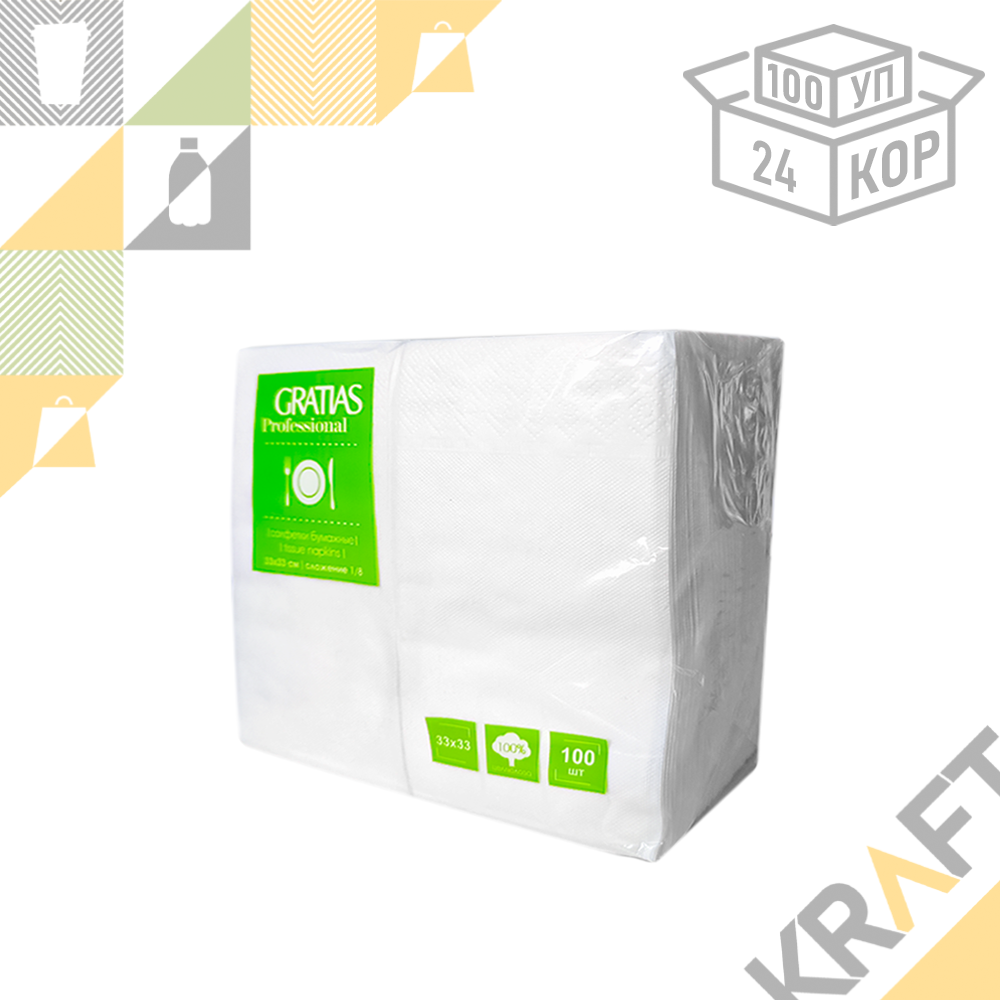 Салфетки 33х33 2сл, 1/8 сложения, GRATIAS professional белые (100 листов) /24