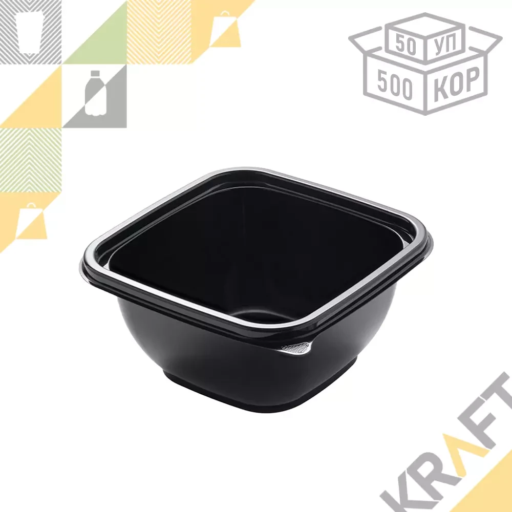 Контейнер ПЭТ 1212 черный 126*126*60мм 500 мл (50/500) (1447)